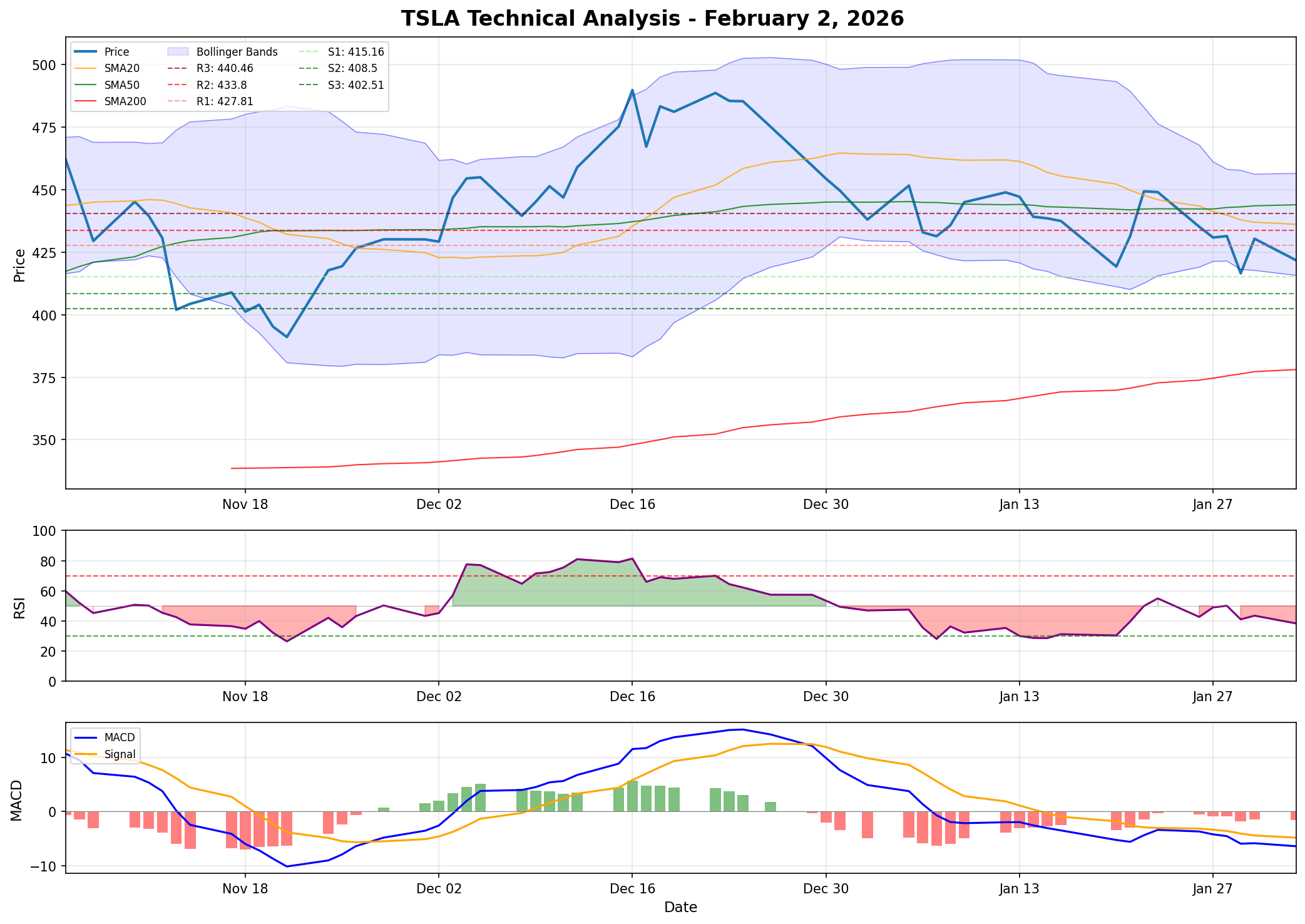 - Technical Risk: Break below $408.50 (S2) would invalidate bullish thesis